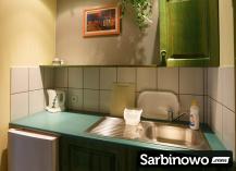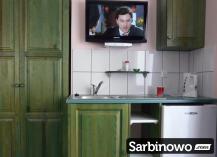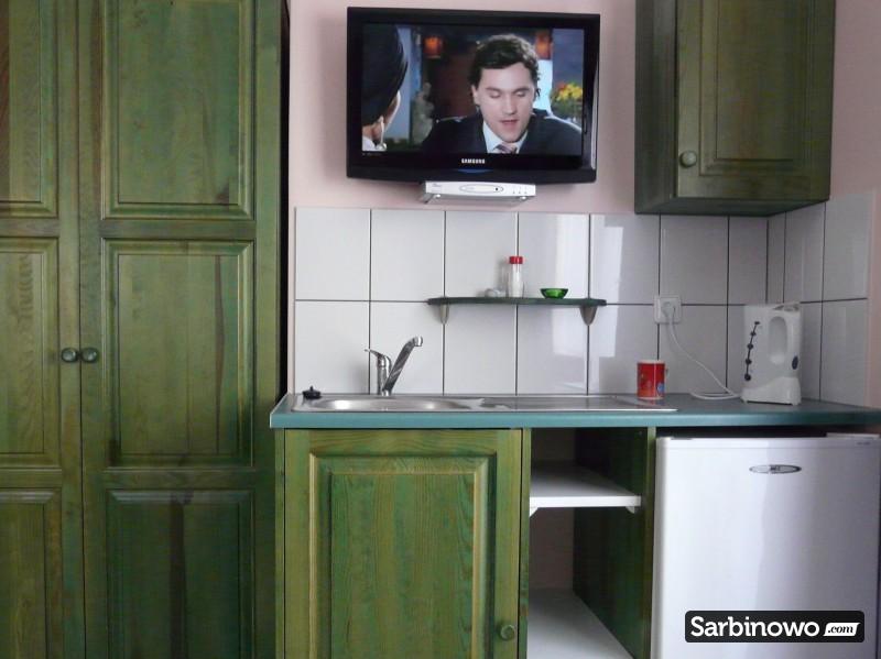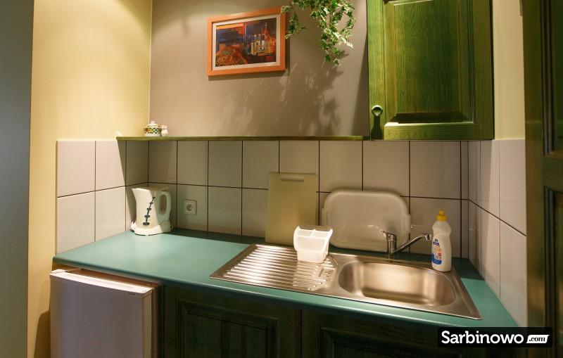W każdym pokoju jest aneks kuchenny z lodówką, czajnikiem elektrycznym i kompletem naczyń kuchennych.
